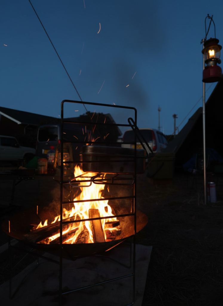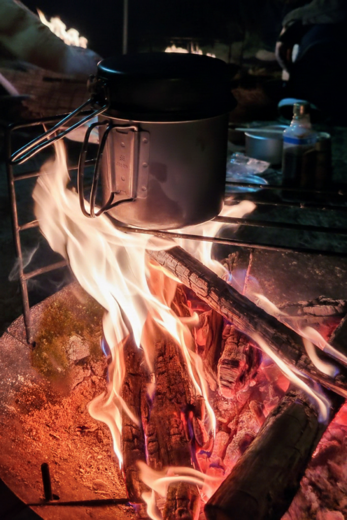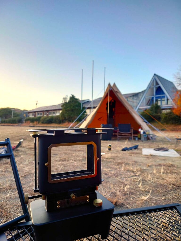 ※19世紀末、鉄製のアイロンを温めるために使われていたストーブ その古いアイロンストーブをクッカーとしてキャンプで使っている