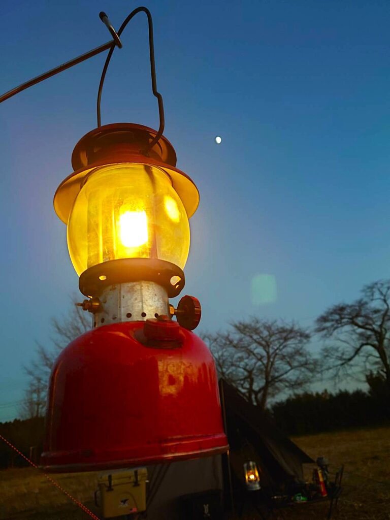 コールマン程の明るさは期待できませんが、夕暮れの雰囲気に合う最高のランタンですね