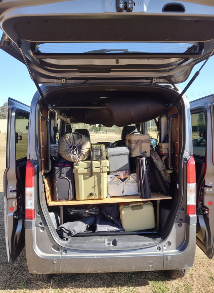 キャンプ慣れしていますね!車の収納が『GOOOO!!』