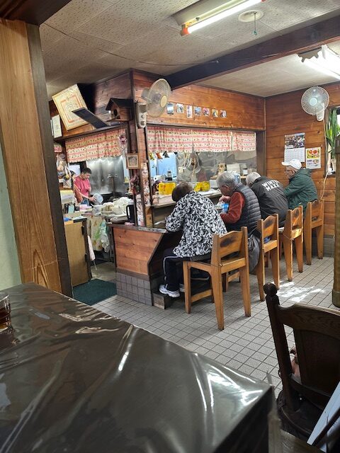 店内はテーブル席とカウンター席に加え、畳のテーブル席もあり、お子様連れでも安心できる造りです。お昼時ということもあり満席で、外で10分ほど待つことに。