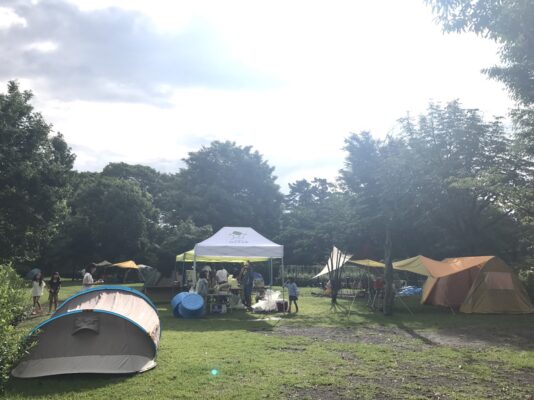 青々とした芝生と木々に囲まれた会場で、大人も子どもも自然の中の時間を満喫しました。食事の時間は、みんなで協力して準備。