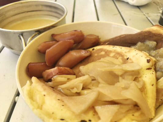 焼きたてのホットケーキやソーセージ、温かいスープなどが並び、列に並びながら「どれにしよう?」と会話が弾みます。子どもたちが自分で盛り付けをする姿や、家族同士で声をかけ合う様子がとても印象的でした。キャンプならではのゆったりとした空気の中、世代を超えた交流が自然と生まれ、最後は参加者全員で記念撮影。
