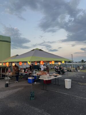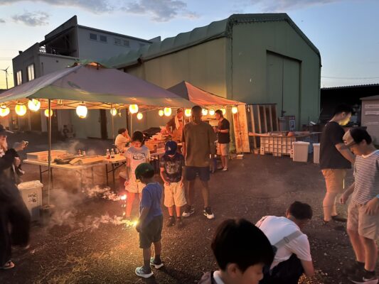 はじめは少し緊張した様子でも、火花が散るたびに笑顔が広がり、自然と輪ができていきます。色とりどりの光が足元を照らし、会場はにぎやかであたたかな雰囲気に包まれました。テントの下では食事や会話を楽しむ姿も見られ、世代を超えてゆったりと交流できる夏の夜ならではのひとときに。