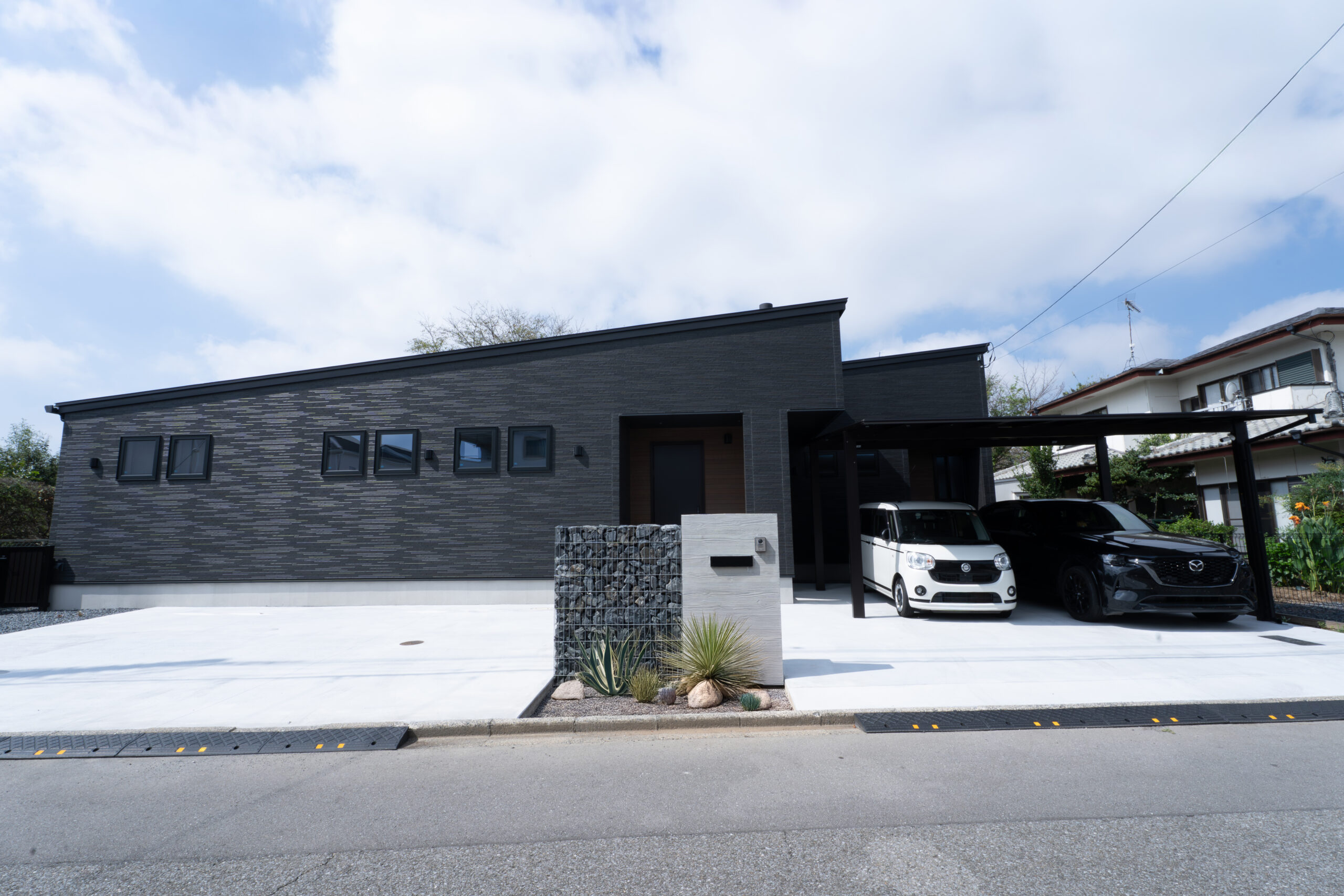 シンプルな外観で、通りからの視線をやさしく遮る安心の住まい。落ち着いたデザインで、プライバシーにも配慮した心地よい暮らしを実現。無駄のない美しさと、守られた安心が調和した家です。